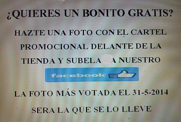 Trino propone a sus clientes echarse una foto en su local con el cartel de Quiero mi bonito y colgarla en Facebook, con lo que se entra en el concurso para conseguir un bonito de máxima calidad. El que reciba más Me Gusta, será el ganador. El concurso se mantiene hasta finales de mayo.