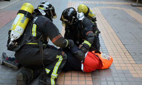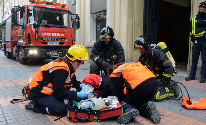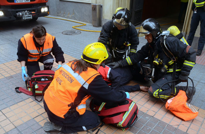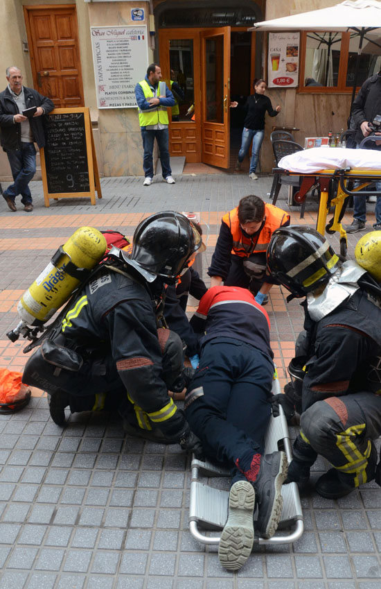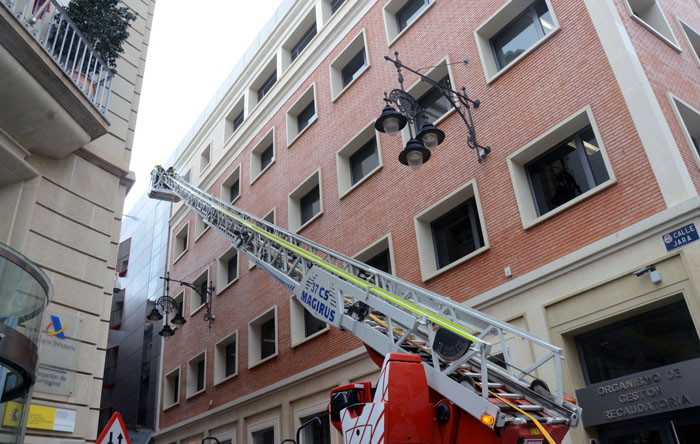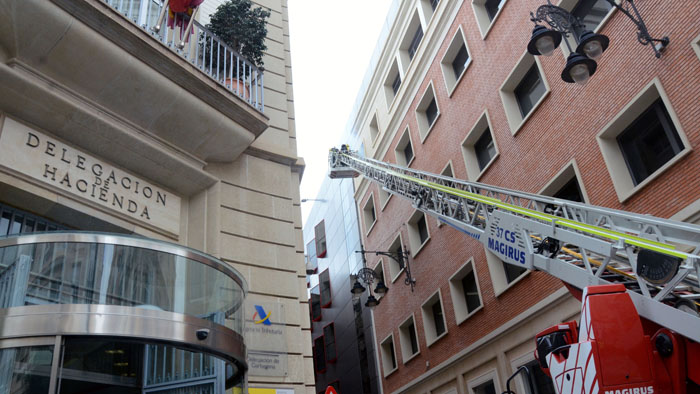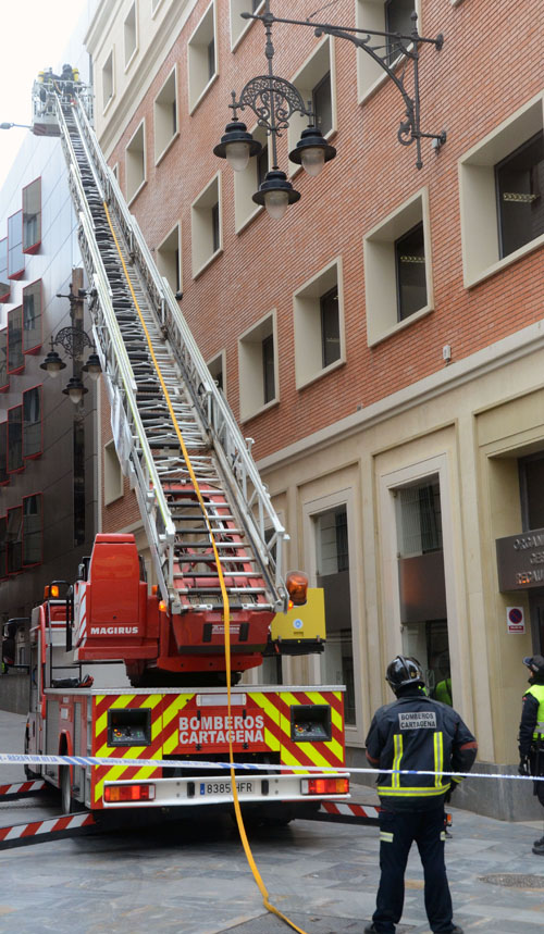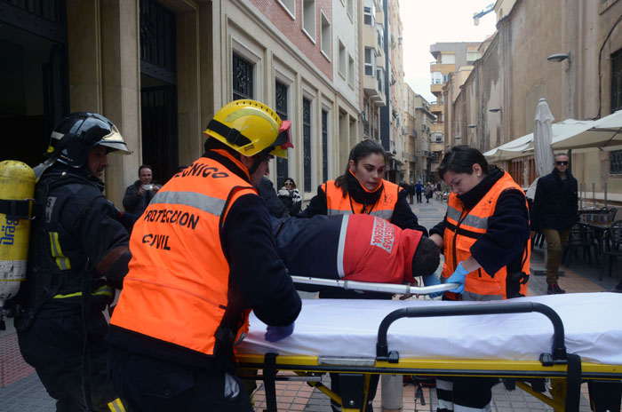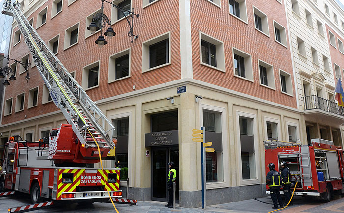 Un simulacro de incendio registrado en la cuarta planta del Edificio Administrativo del Ayuntamiento de Cartagena en la calle San Miguel ha puesto a prueba los planes de autoprotección y evacuación del inmueble, en el que a diario trabaja unos quinientos empleados públicos.