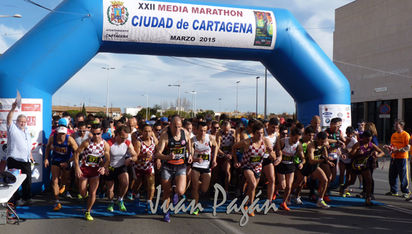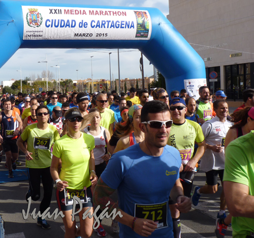 Grupos participantes en la Media Marathón de Cartagena, que batió su marca de participación con mil seiscientos participantes.