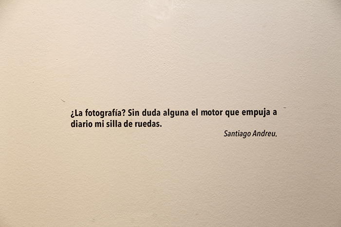 La exposición narra una historia personal, el paso por su enfermedad, la esclerosis múltiple. Historias de una superación muestra a través de sus imágenes el encuentro con los médicos, con la fisioterapeuta, con los enfermeros. Por este motivo ha querido retratarlo, ahora más que nunca. Capta imágenes de la calle también, fotografías de su entorno, imágenes llenas de vida y positividad. En una de las imágenes expuestas se puede leer un mensaje directo sobre lo que supone para este artistas la fotografía.