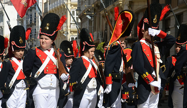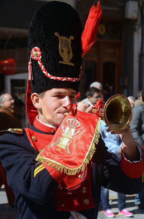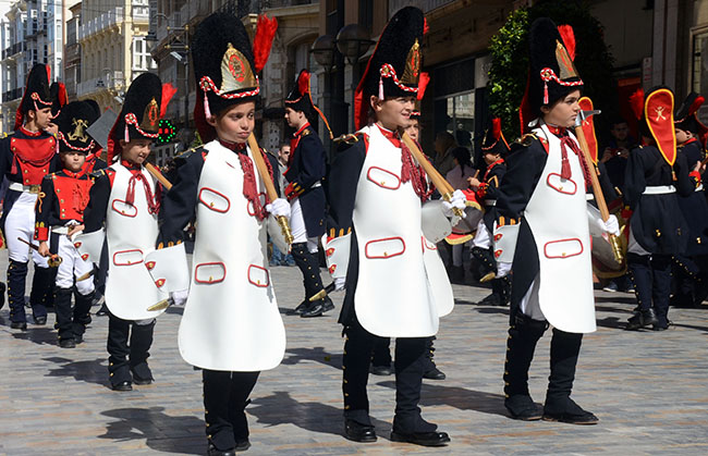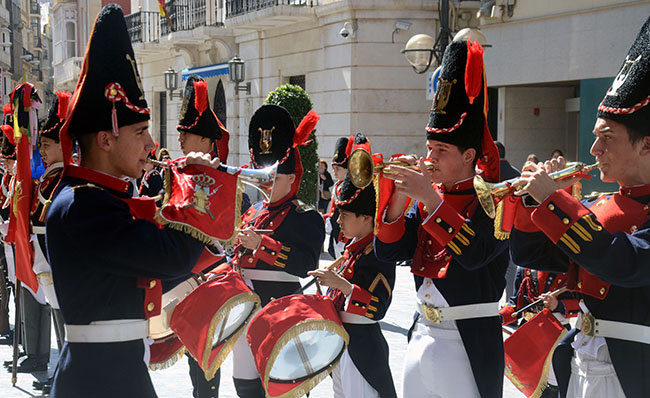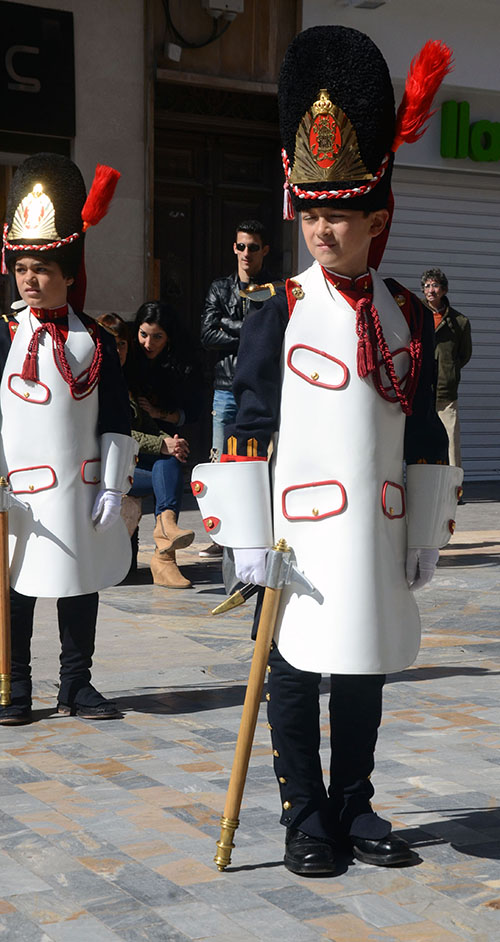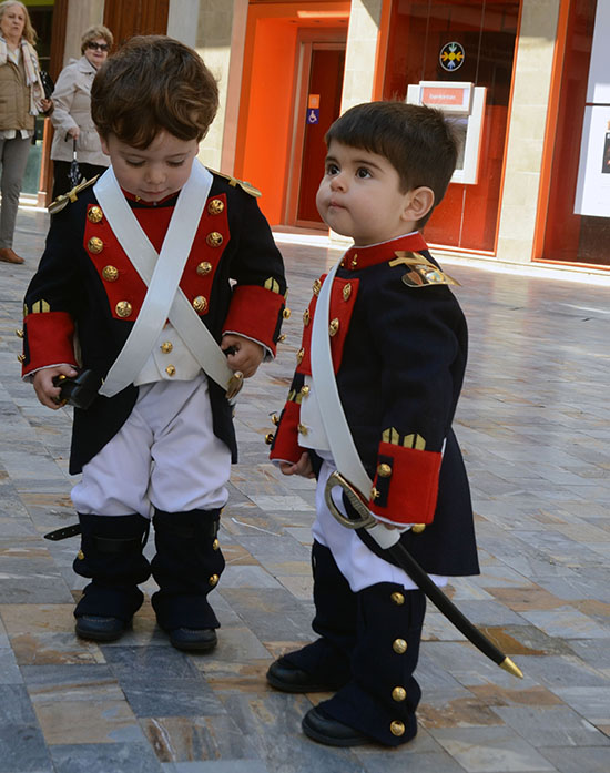 Imágenes tomadas durante el pasacalles de los granaderos infantiles de la agrupación california en la mañana del sábado por el centro de Cartagena.