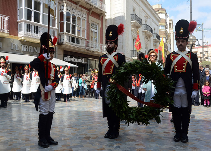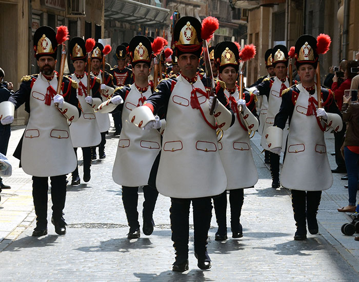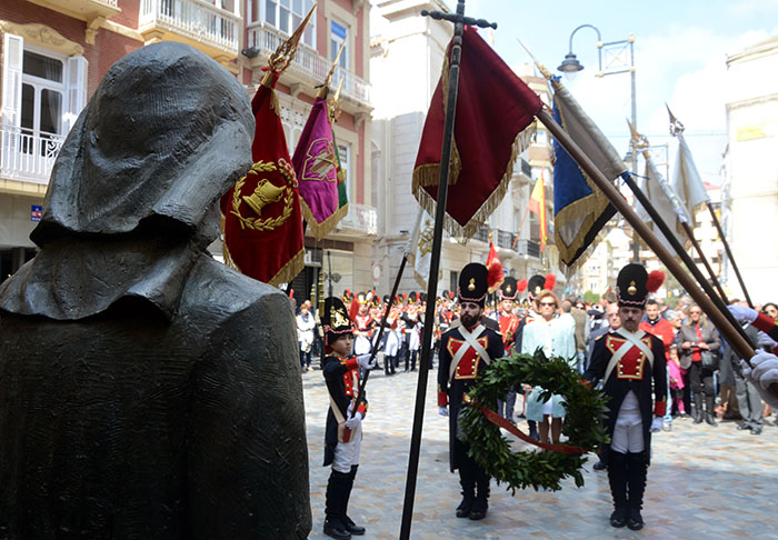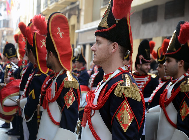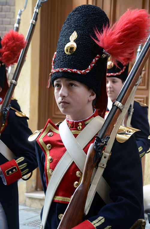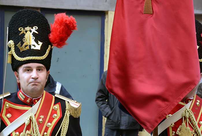 Imágenes de Pedro Valeros del pasacalles del tercio titular de los granaderos californios por el centro de la ciudad, que incluyó el homenaje al Monumento del Procesionista.