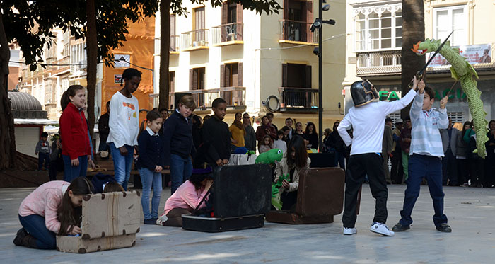 Los actores se desplegó por la plaza de San Francisco con motivo del Día Internacional del Teatro, como muestran estas fotografías de Pedro Valeros.