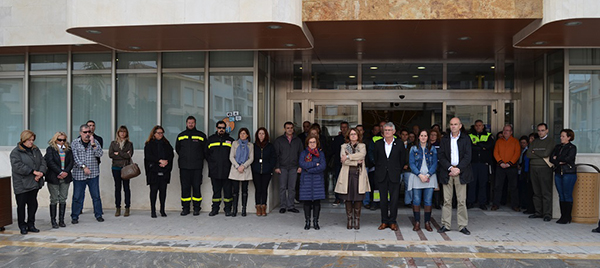 Imágenes de los minutos de silencio llevados a cabo hoy en edificios públicos de nuestra zona por la tragedia aérea en los Alpes franceses.