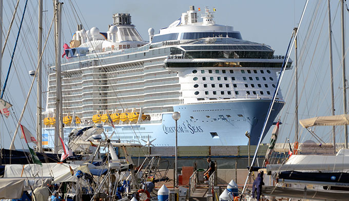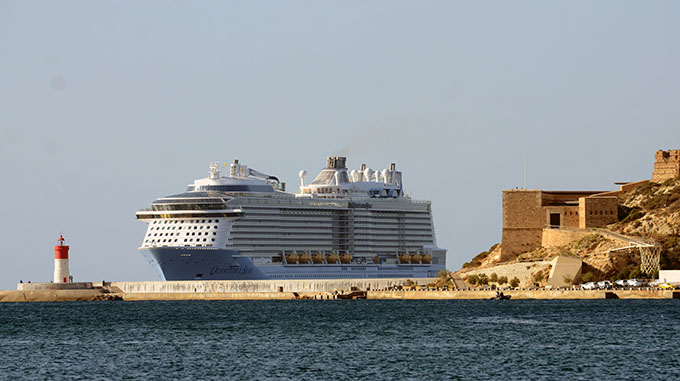 El crucero Quantum of the Seas, considerado el barco más revolucionario del mundo, estuvo ayer en Cartagena en su primera escala española, desembarcando más de cuatro mil personas.