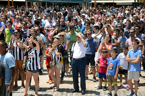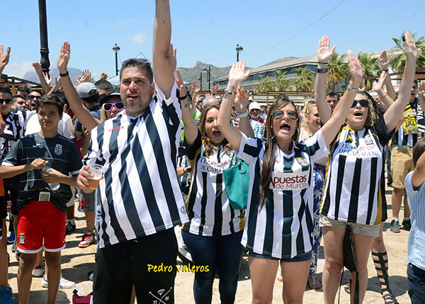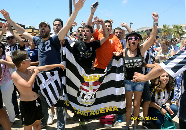 Numerosos cartageneros se han dado cita en torno a la pantalla gigante colocado en el puerto de Cartagena, donde han visto el decisivo partido entre Las Palmas Atlético y el FC Cartagena, en el que han pasado de ver al equipo descendido a explotar de alegría cuando marcó Carlos Martínez.