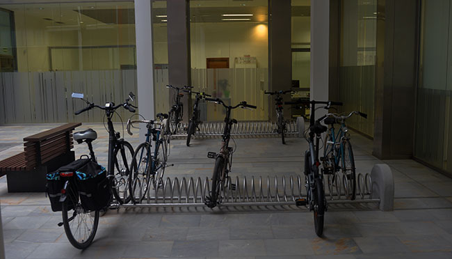 Instalan un aparcamiento de bicicletas en el patio del edificio administrativo, en San Miguel.