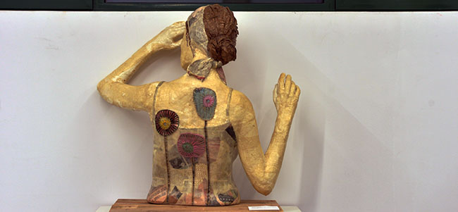 El centro docente cartagenero de la calle Menéndez y Pelayo acoge una exposición colectiva de escultura y pintura en la que participan Laura Molina, Piluca Coello, Fernando Sánez de Elorrieta, Manuel Cruz y Jesús Inglés.