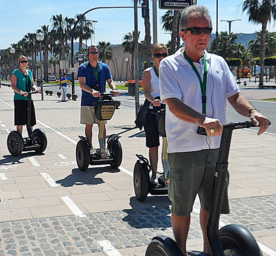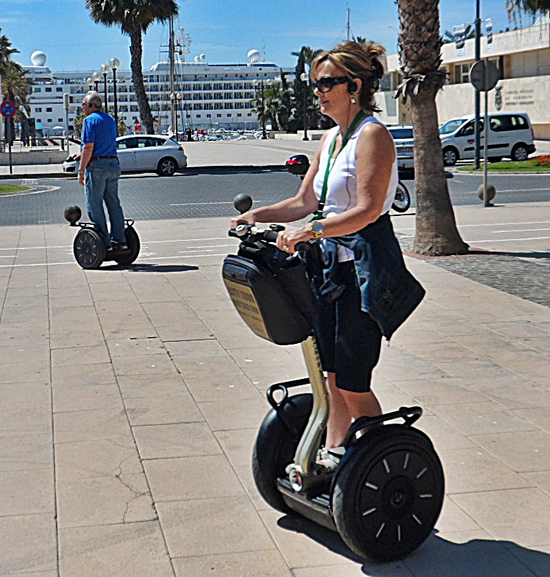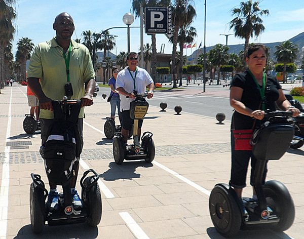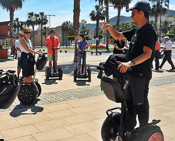 Con Sergio y Pedro, la empresa Segway Tours de Alicante y Natoura Group de Cartagena, unen sus esfuerzos para ofrecer a los cruceros que arriban a la ciudad, este servicio divertido; y a la vez hacen un recorrido guiado de unos 90´ minutos por la ciudad visitando calles, monumentos y lugares históricos para fotografiar.