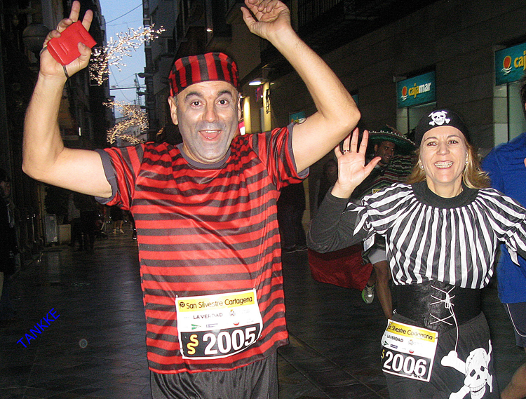 Esta es una de las imágenes simpáticas que nos dejó la carrera de San Silvestre de Cartagena, la más antigua de la Región y que batió su récord de participación bajo un derroche de imaginación de los participantes.