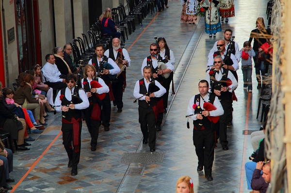 La banda de gaiteros Celtícue no se perdió su cita con la Patrona de Cartagena en su día grande.