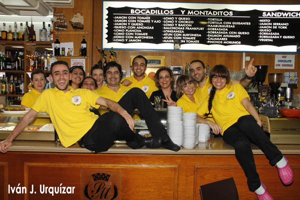 La Semana Santa de Cartagena también supone un esfuerzo extra en el capítulo laboral, como el que han desarrollado este animoso grupo de trabajadores de un establecimiento hostelero del centro histórico.