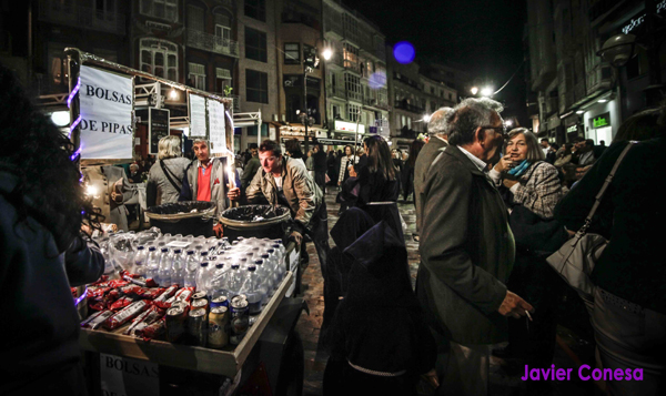 "¡Pipas, agua...!". Esas palabras son ya habituales entre aquellos que esperan que llegue a su altura la cabeza de la procesión, en este caso del Viernes Santo marrajo.