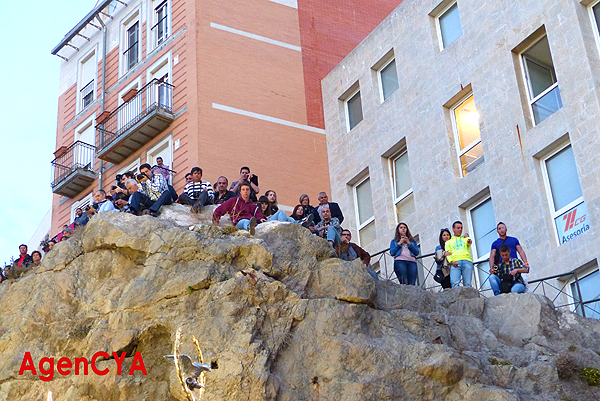 Estos espectadores disfrutaron de un palco privilegiado para ver la salida de San Juan en la tarde de ayer, en el pequeño cerro de piedra que hay frente al Parque de Artillería.