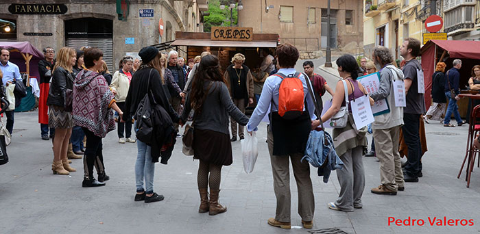 Circulo reclamando el derecho al trabajo digno de un grupo de ciudadanos durante la celebración del Mercado Medieval en Cartagena.