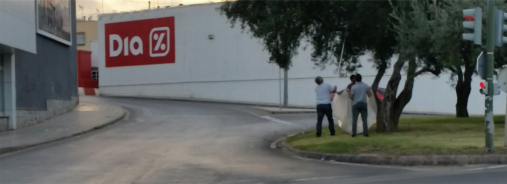 Foto captada este fin de semana de varias personas recogiendo las aceitunas de un olivo ubicado en la Media Sala de Cartagena.
