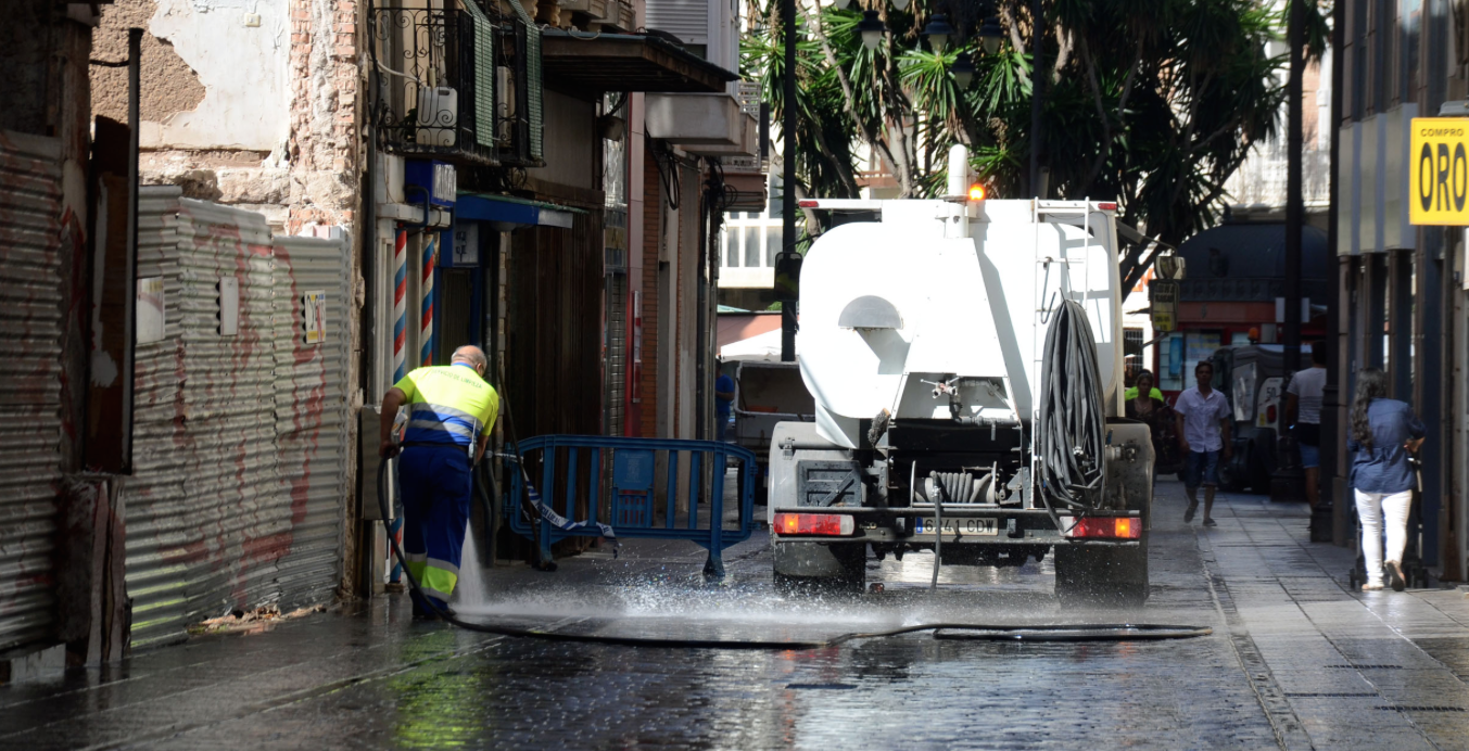 Una maquina de limpieza de calles ha vertido por el casco histórico de Cartagena un contenido de grasa del vehículo, lo que ocasionó que dos personas resbalaran cayendo al suelo. Después se produjo el lógico atasco mientras se limpiaban las vías.