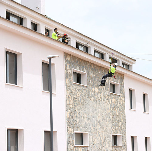 En esta actividad participaron los estudiantes del campus de Los Dolores, que han visto de cerca actuaciones como el simulacro de rescate de una víctima en camilla mediante una tirolina.