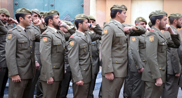 Los miembros del piquete de Artillería realizaron ayer el tradicional recorrido por las calles de la ciudad para prepararse de cara a los desfiles pasionales del Miércoles Santo y del Domingo de Resurrección en los que participan.