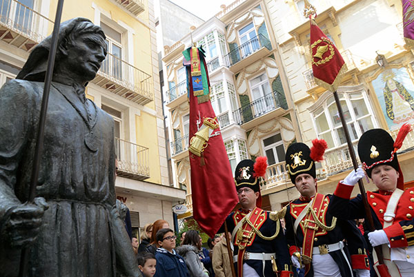 Imágenes de Pedro Valeros del pasacalles del tercio titular de los granaderos californios por el centro de la ciudad, que incluyó el homenaje al Monumento del Procesionista.