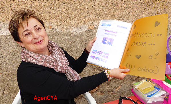 Encarna García Pérez, aljorreña y artesana, muestra artículos de cartagenadehoy.com que ha impreso y que guarda en sus carpetas.