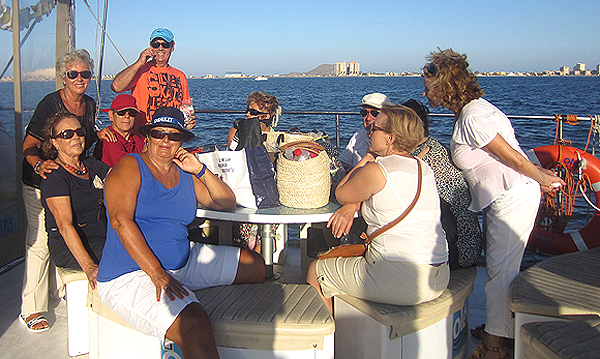 La presidenta y la vicepresidenta de la Universidad de Mayores de la UPCT se reunieron un año más para pasar una tarde de agosto de convivencia en un particular 'crucerito' por el Mar Menor. Incluye GALERÍA DE FOTOS
