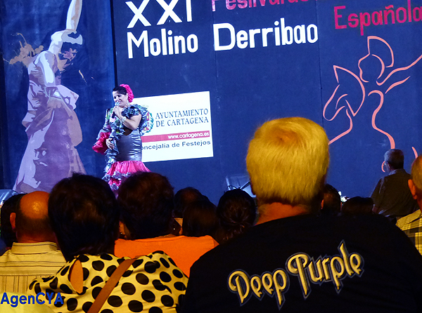 Un espectador con la camiseta de los legendarios rockeros Deep Purple siguiendo las evoluciones del Festival Nacional de la Canción Española de Molino Derribao (Cartagena).